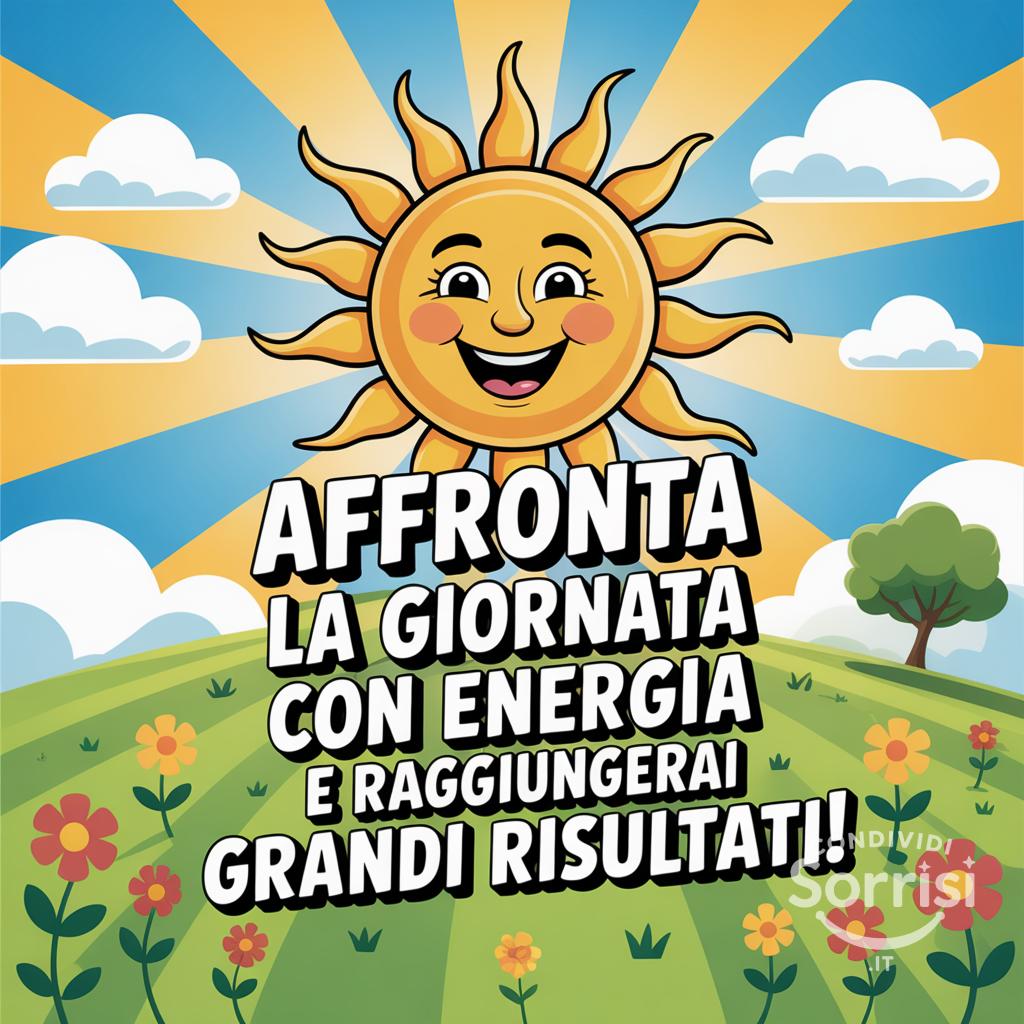 Illustrazione motivazionale: Affronta la giornata con energia e positività! Grafica cartoon vivace per il buonumore. #motivazione #positività #illustrazione
