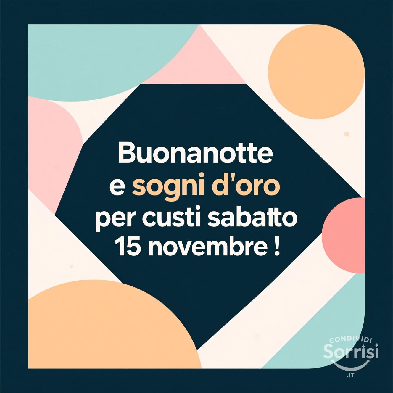 Buonanotte e sogni d'oro! Immagine astratta con forme geometriche e colori pastello, stile moderno e minimalista. Messaggio augurale per sabato 15 novembre. Ottimizzato SEO.
