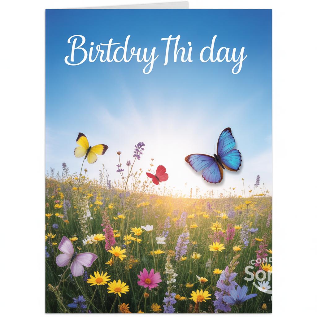 Buongiorno con un prato fiorito, farfalle colorate e un cielo azzurro luminoso