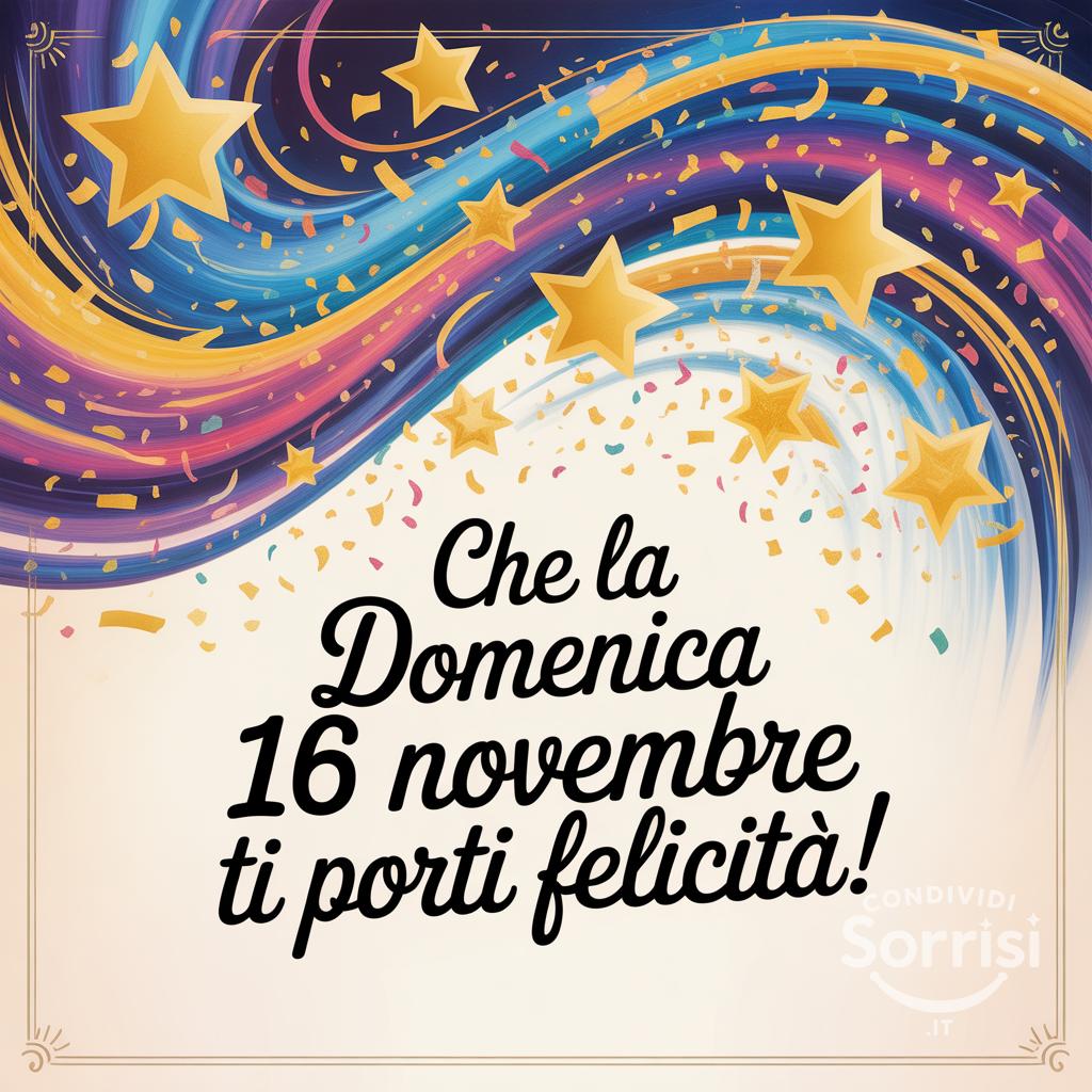 Che la domenica 16 novembre ti porti tanta felicità! ✨🎉 Lasciati avvolgere dall'allegria, tra stelle filanti e coriandoli, e vivi a pieno ogni istante! 💖 #domenica #felicità #festa