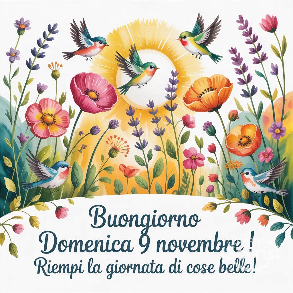 ☀️ Buona domenica! ✨ Lascia che la gioia illumini questa giornata speciale. Che sia un 9 novembre indimenticabile, ricco di sole e positività. 😊