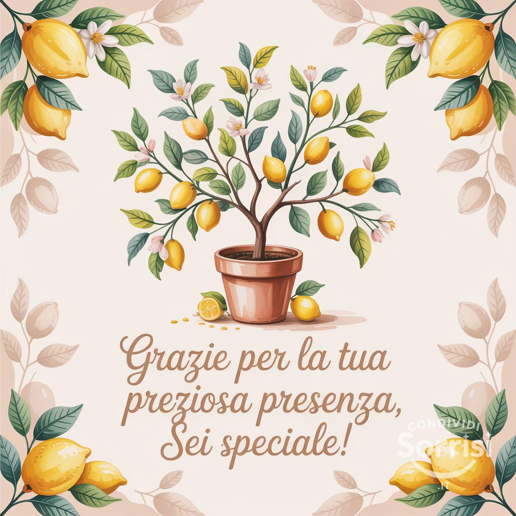 Immagine delicata con frase "Grazie per tutto, sei speciale!". Stile stilizzato, colori tenui, atmosfera sognante. Ideale per ringraziamenti, dediche speciali e biglietti.