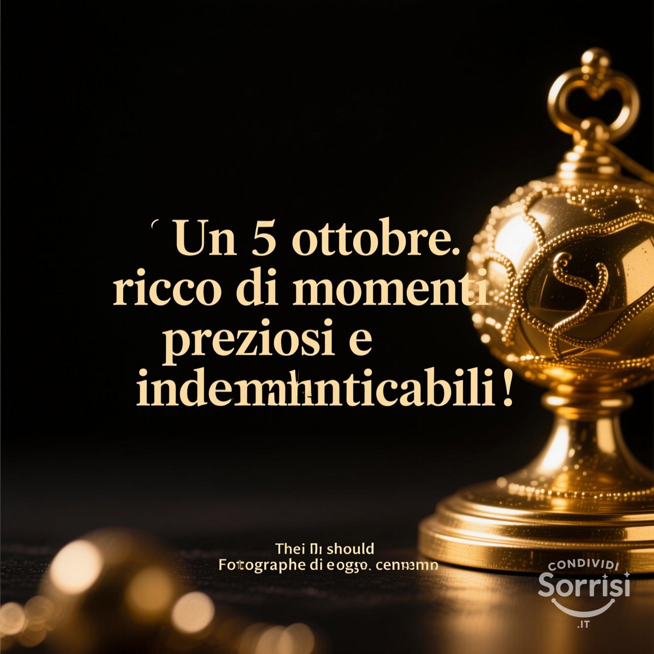 "5 ottobre: frase dorata su sfondo scuro. Fotografia elegante con dettagli preziosi e indimenticabili. Stile raffinato e luminoso per celebrare i momenti speciali."