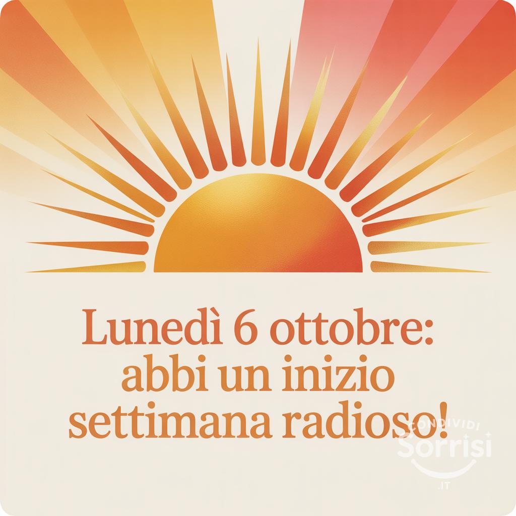 ☀️ Lunedì 6 ottobre! Inizia la settimana con energia e positività. Che sia radioso! ✨ #lunedi #nuovasettimana #positività #sole #energiapositiva