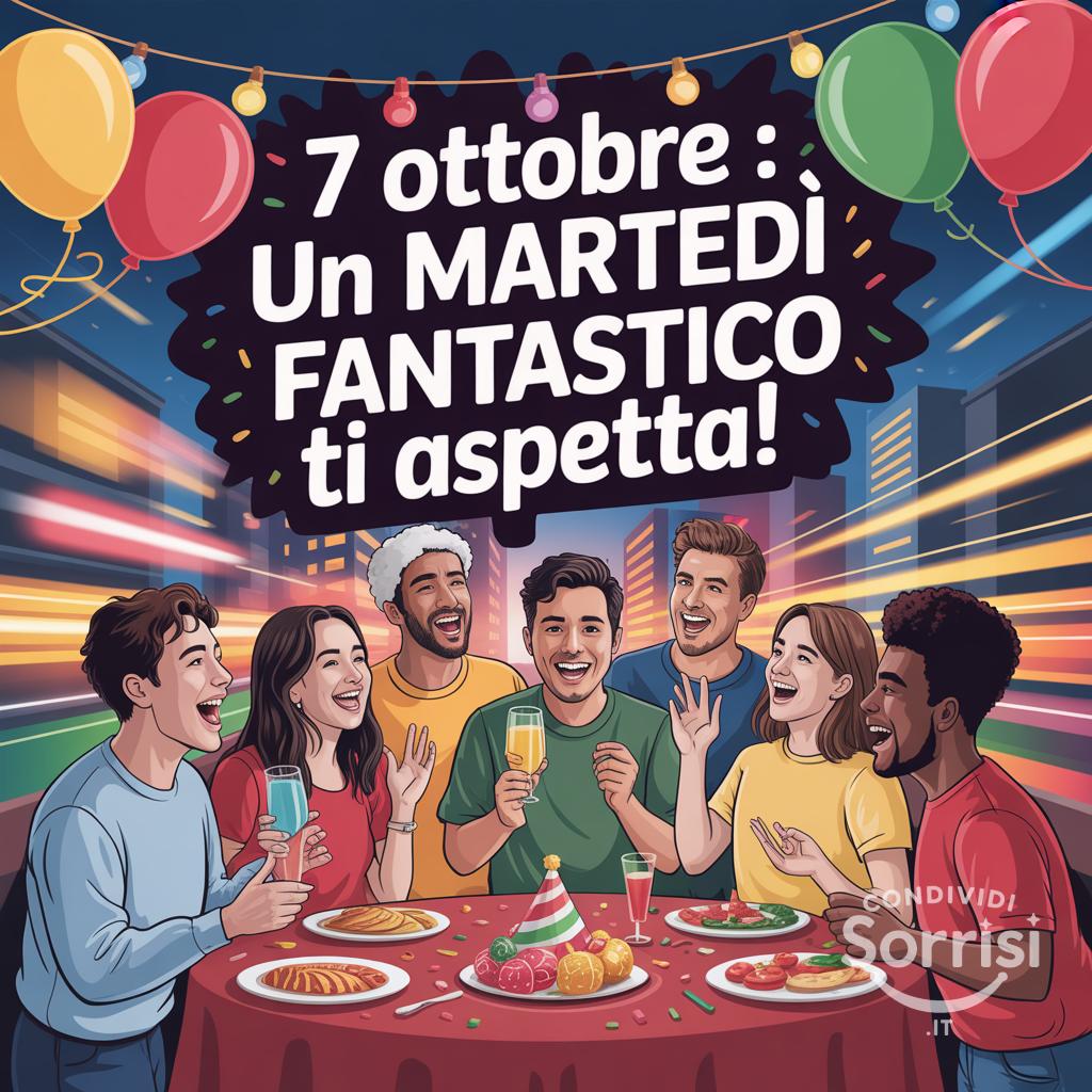 7 Ottobre: sorridi! ✨ Un martedì fantastico ti aspetta! 🎉 Lasciati contagiare dall'energia positiva e vivi ogni momento con gioia! 😊 #martedì #ottobre #positività #felicità