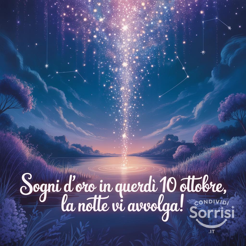 ✨ Sogni d'oro sotto questa cascata di stelle! 🌠 Che la notte del 10 ottobre vi avvolga in un abbraccio di pace. Buonanotte! 🌙