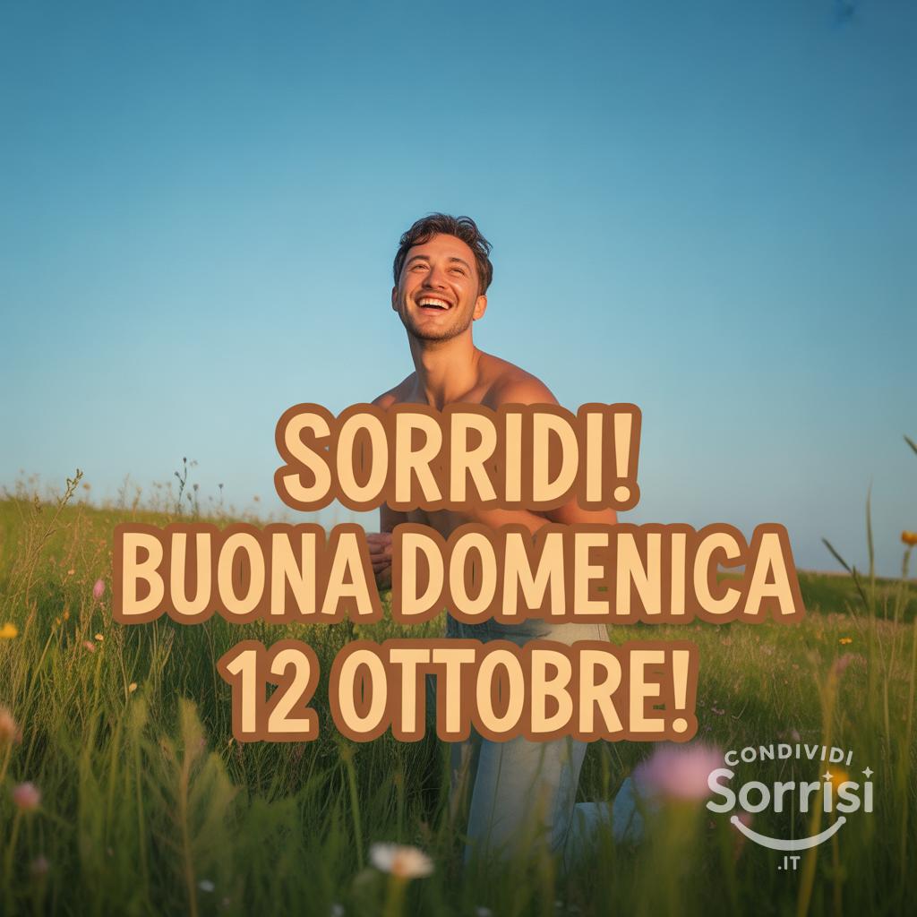 Sorridi! 😊 Buona domenica 12 ottobre! Un cielo azzurro e un prato verde per una giornata fantastica! Goditi ogni momento! ☀️