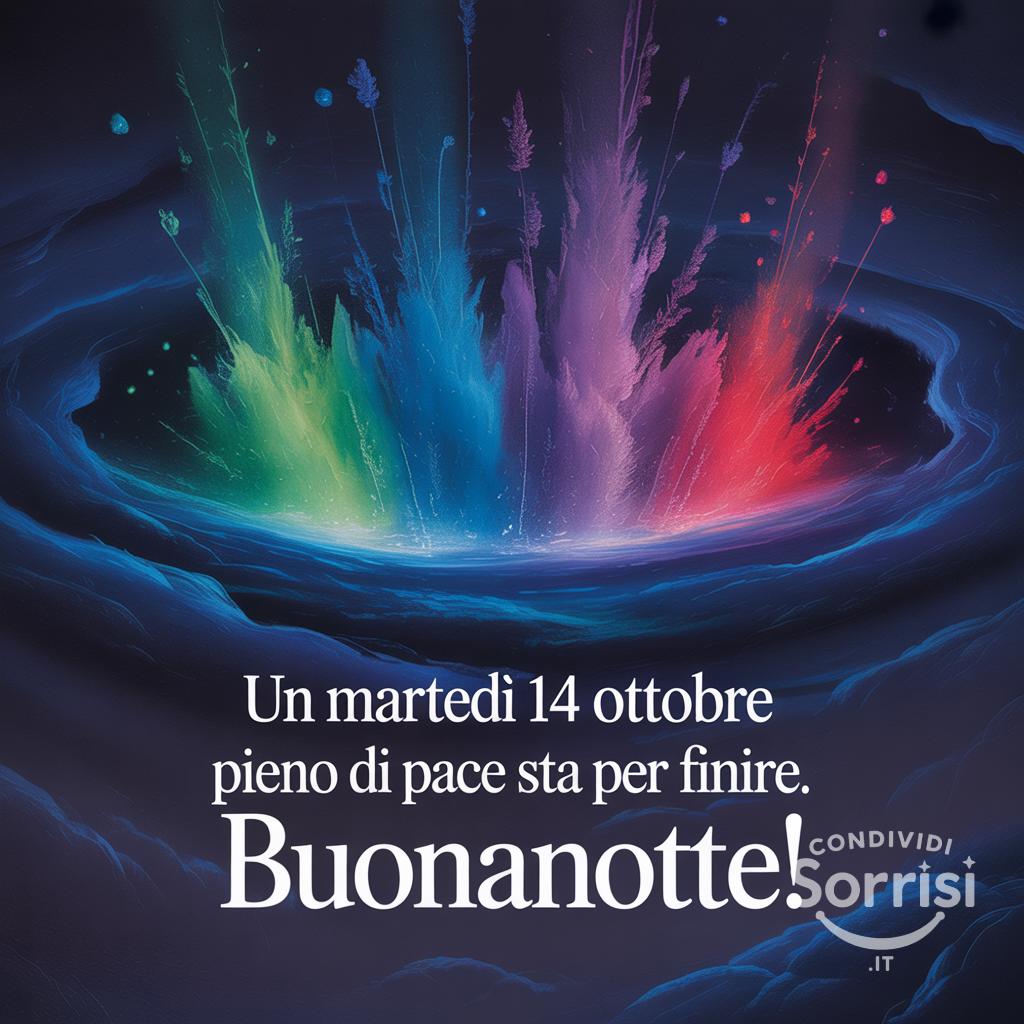 Un martedì 14 ottobre si chiude con la pace nel cuore. ✨ L'esplosione di colori nella notte porta serenità. Buonanotte! 💖 #buonanotte #pace #serenità #colori #ottobre