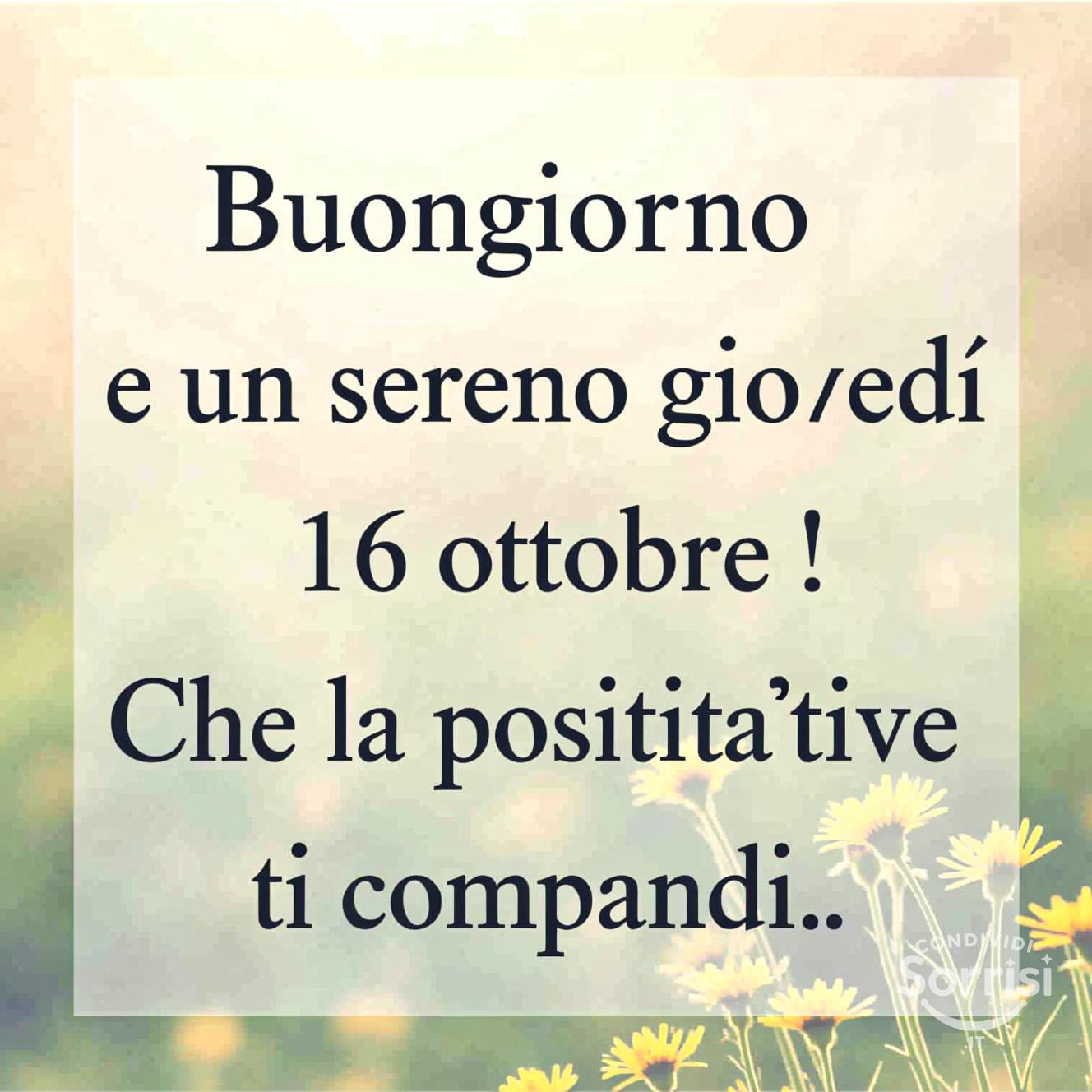 Buongiorno e un sereno giovedì 16 ottobre ! Che la positività ti accompagni.