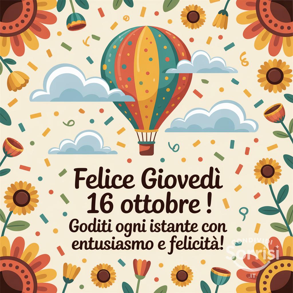 Felice giovedì 16 ottobre ! Goditi ogni istante con entusiasmo e felicità!