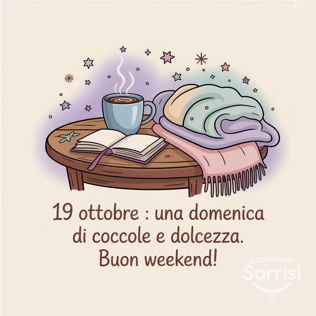19 ottobre: weekend di coccole e dolcezza! ☕️📖 Avvolgiti in una coperta, prendi una cioccolata calda e goditi un momento tutto per te. Buona domenica! 🥰