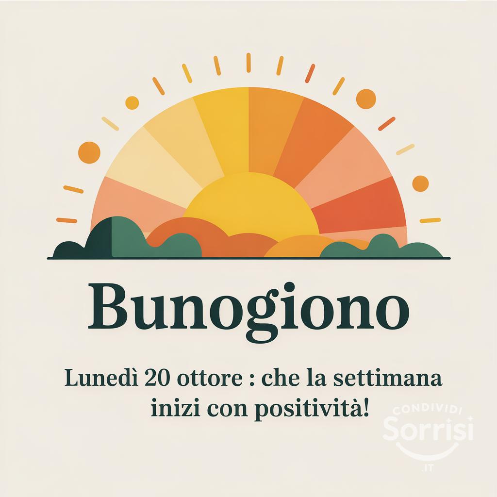 Buongiorno! ✨ Lunedì 20 ottobre: che la settimana inizi con positività! ☀️ Carichi di energia e pronti ad affrontare nuove sfide. 💪 #Buongiorno #Lunedì #Ottimismo #NuovaSettimana #Positività