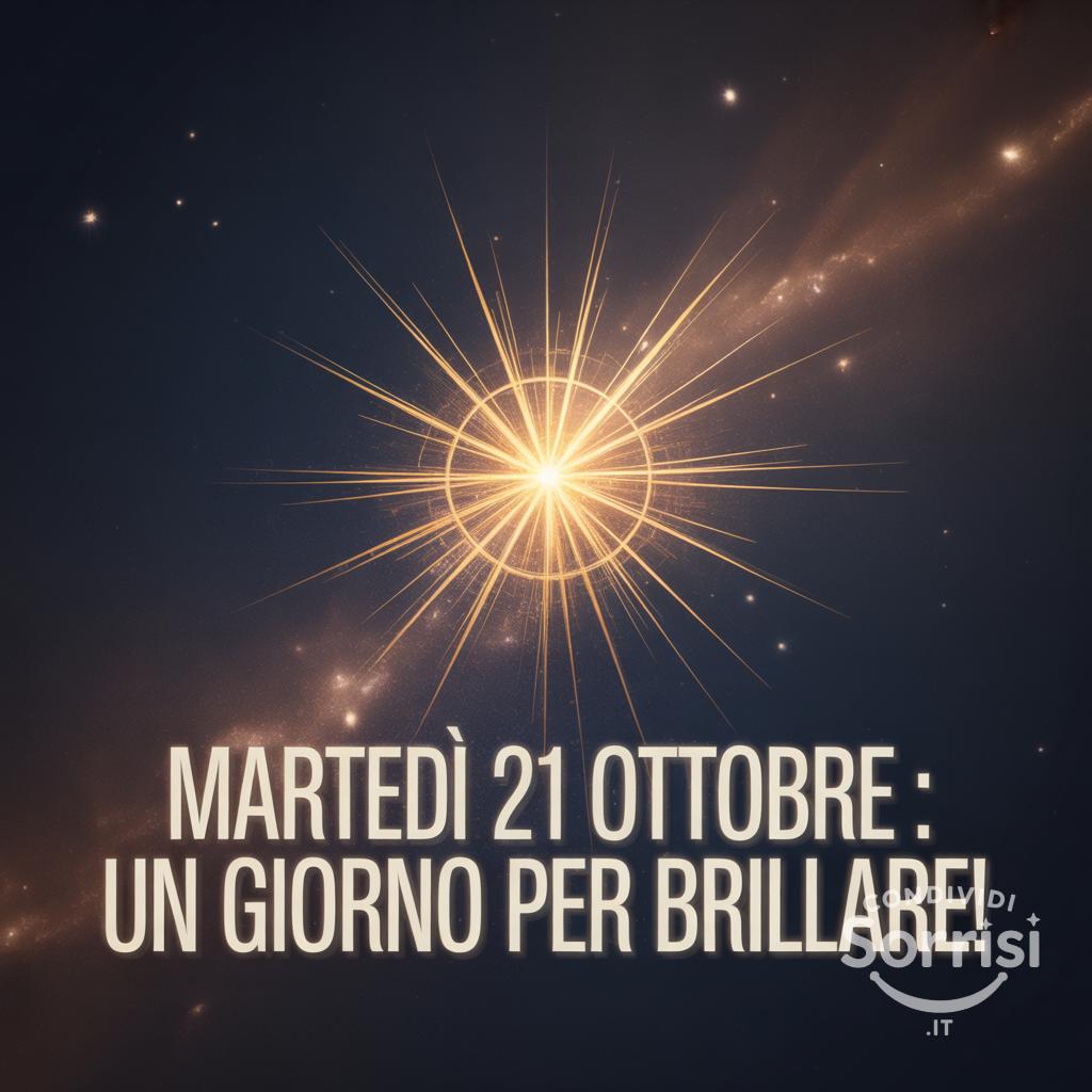 ✨ Martedì 21 ottobre: un giorno per brillare! 🌟 Lascia che la tua luce interiore risplenda più che mai. Credi in te stesso e raggiungi le stelle! 💖 #autostima #brilla #crediinte