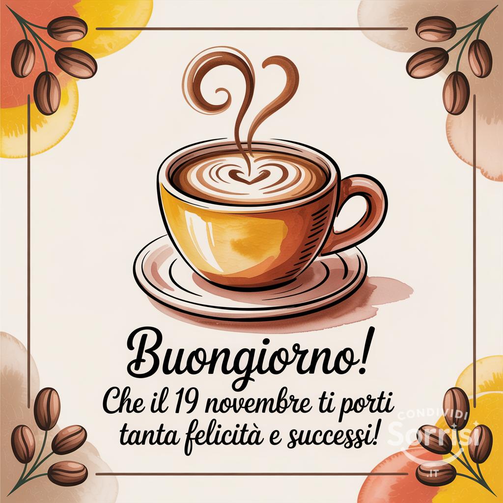 Buongiorno! ✨ Il 19 novembre è qui, pronto a regalarti felicità e successi! Che questa giornata sia piena di energia positiva e soddisfazioni! 😊