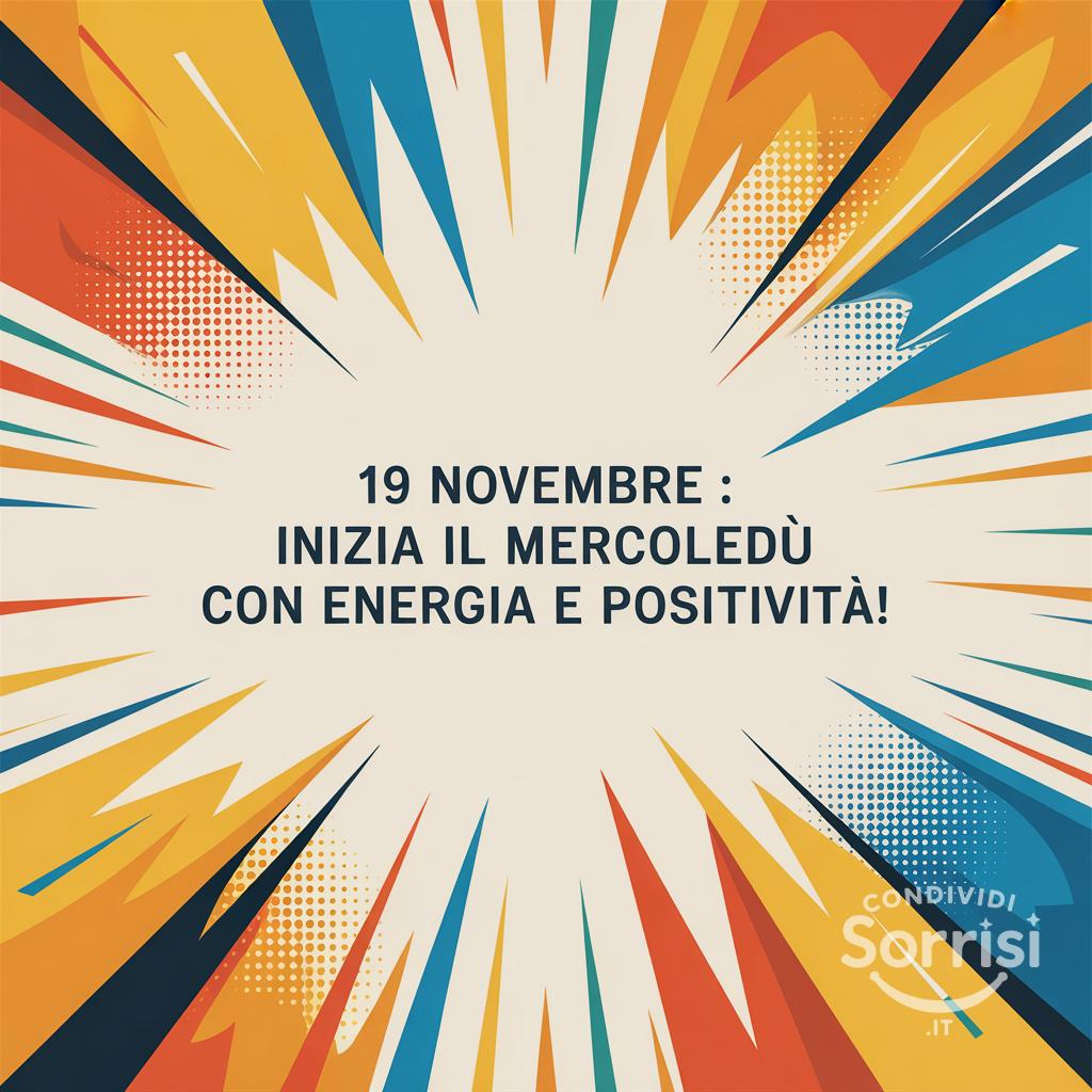 19 novembre: inizia il mercoledì con energia e positività! ⚡️Colori vibranti e forme geometriche per una giornata carica. 💪 #mercoledì #positività #energia #buongiorno #motivazione