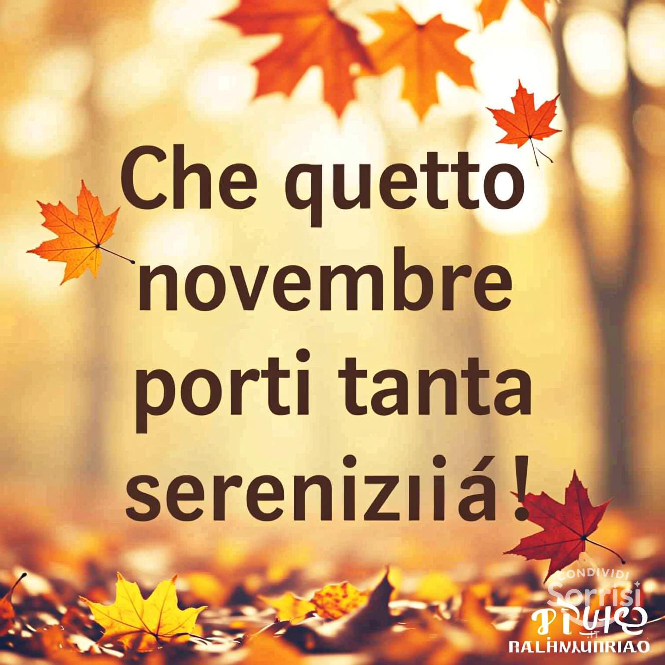 Novembre sereno: immagine calda con frase augurale. Colori autunnali, atmosfera accogliente e rassicurante. Serenità, pace, benessere, autunno.