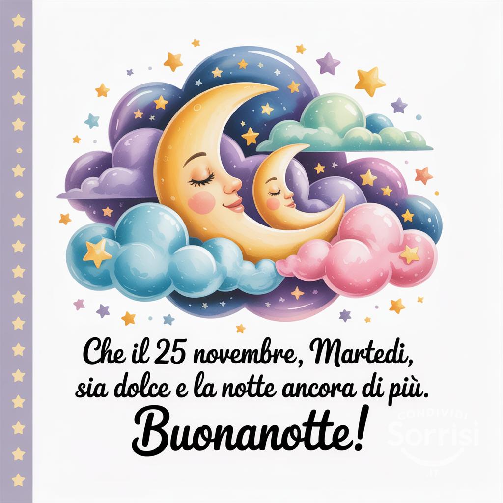 Che il 25 novembre sia dolce e la notte ancora di più! ✨ Buonanotte! 🌙 Un abbraccio tenero per sogni stellati. 💖