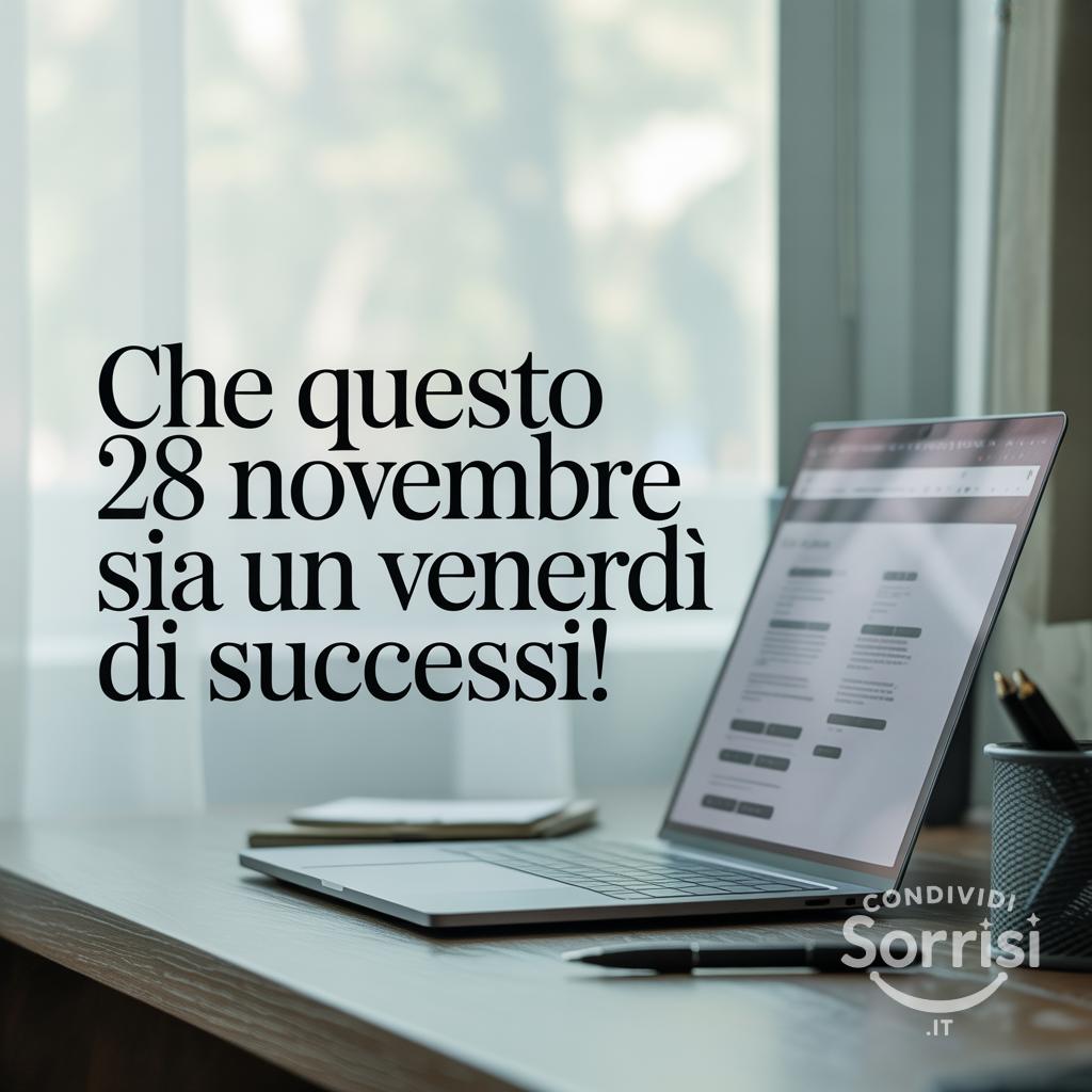 Che questo 28 novembre sia un venerdì di successi! 🚀 Un augurio speciale per un weekend ricco di soddisfazioni e nuovi traguardi. 💪 #successo #motivazione #venerdì #lavoro