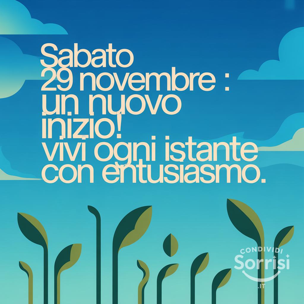 Un nuovo inizio ti aspetta! ✨ Sabato 29 novembre, vivi ogni istante con entusiasmo e lasciati ispirare dalla crescita. Che sia un giorno pieno di novità! #nuovoinizio #entusiasmo #ispirazione