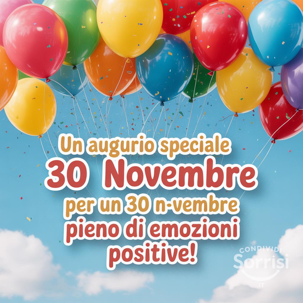 🎈 Oggi è il 30 novembre! ✨ Un augurio speciale per una giornata piena di emozioni positive! 🥳 Tanti colori, sorrisi e gioia per tutti voi! 😊
