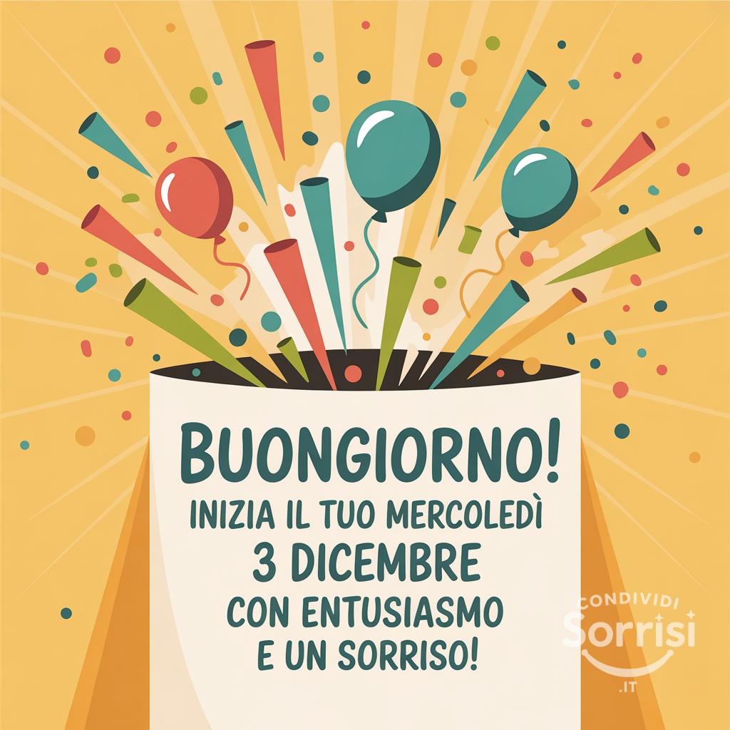 Buongiorno! Inizia il tuo mercoledì 3 dicembre con entusiasmo e un sorriso!