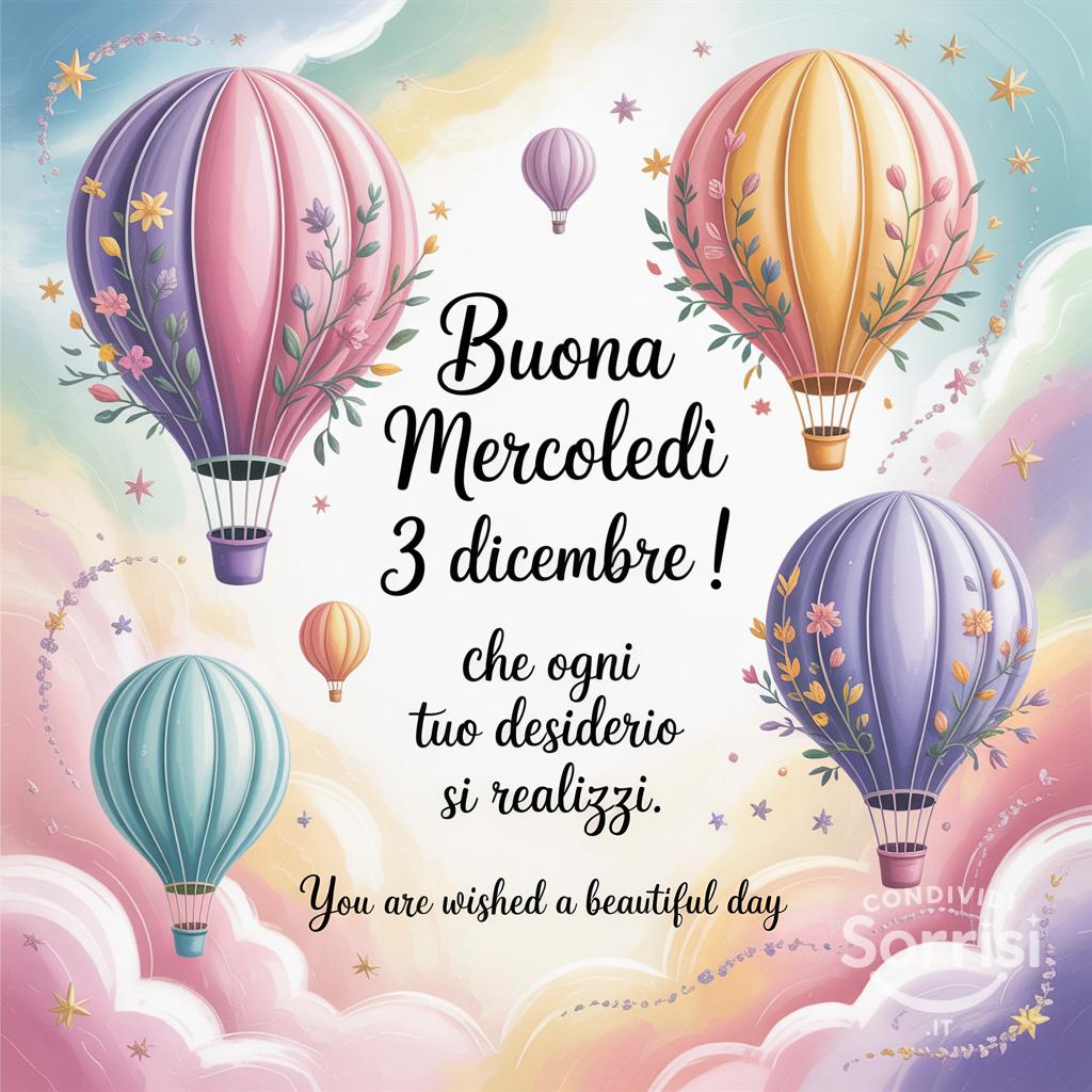Buona mercoledì 3 dicembre ! Che ogni tuo desiderio si realizzi.