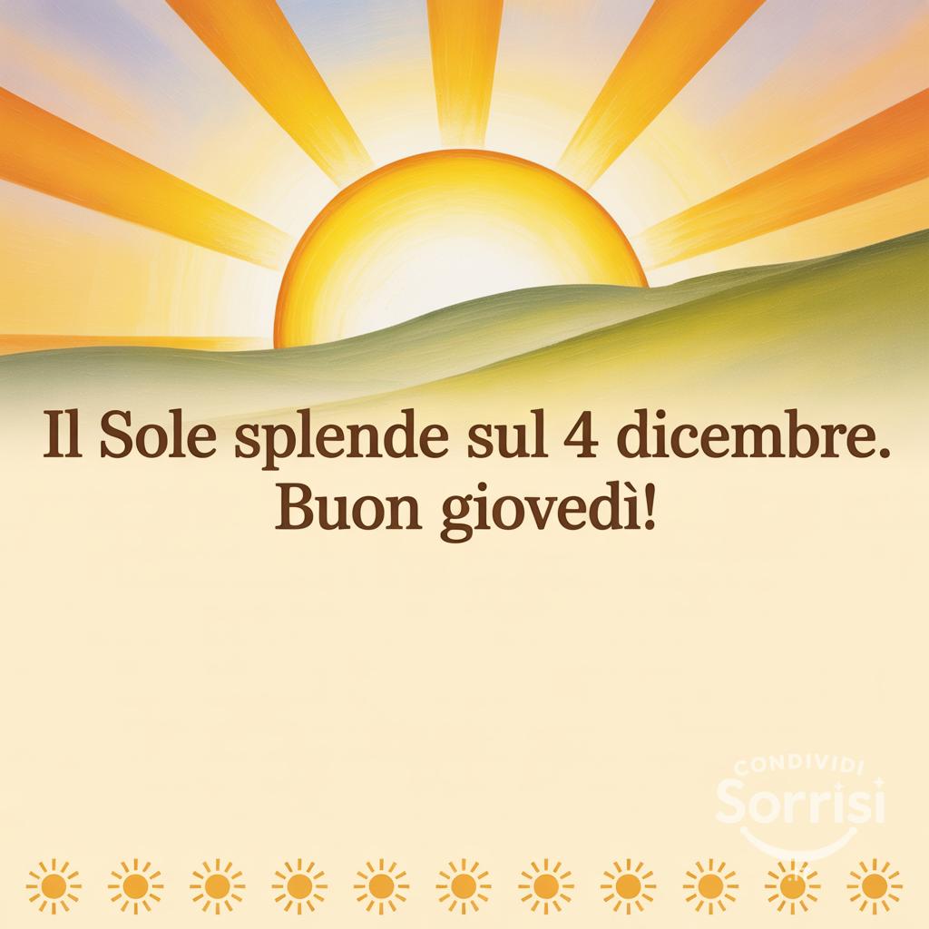 Il sole del 4 dicembre illumina il tuo giovedì! ☀️ Lasciati avvolgere dai raggi dorati e affronta la giornata con energia e positività. Buon giovedì! ✨