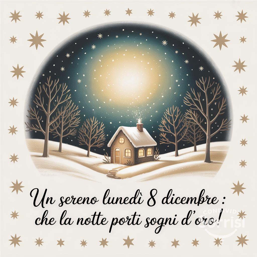 Un sereno lunedì 8 dicembre ✨. Che la notte porti sogni d'oro! 🌟 Immagini romantiche e luci soffuse per un inizio settimana incantevole. #sognidoro #lunedi #stelle