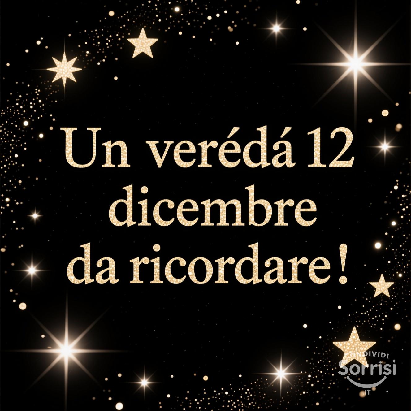 Immagine elegante con frase "Un venerdì 12 dicembre da ricordare!" su sfondo nero stellato. Design sofisticato con glitter, perfetta per celebrare eventi speciali e auguri.