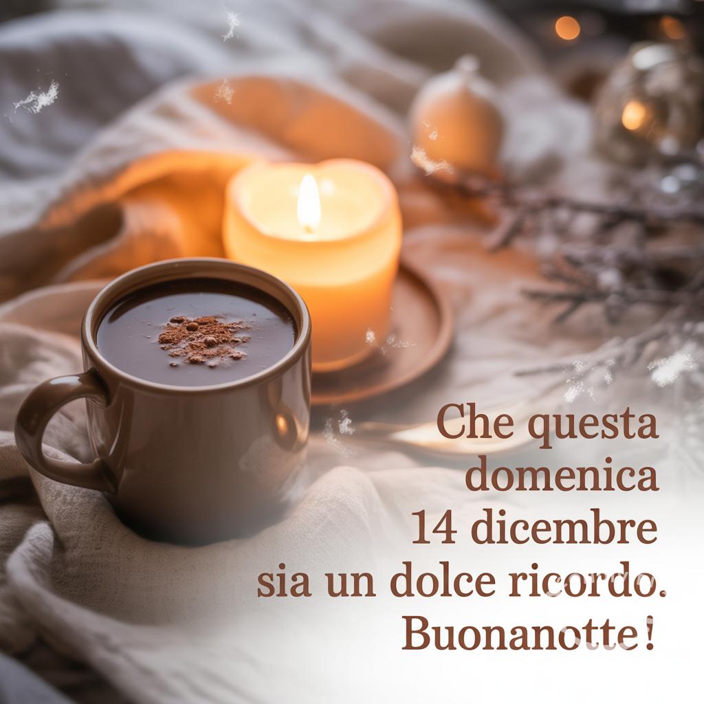 Che questa domenica 14 dicembre sia un dolce ricordo. 🕯️🍫✨ Buonanotte! Sogni d'oro e cioccolata calda per tutti. #domenica #buonanotte #cioccolatacalda #atmosferaaccogliente #relax