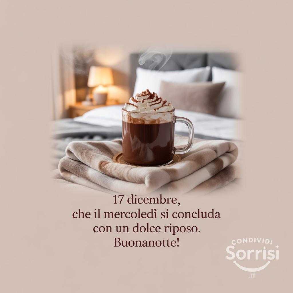 17 dicembre ✨ Che il mercoledì si concluda con un dolce riposo. Buonanotte! ☕️🌙 #buonanotte #cioccolatacalda #mercoledì #relax