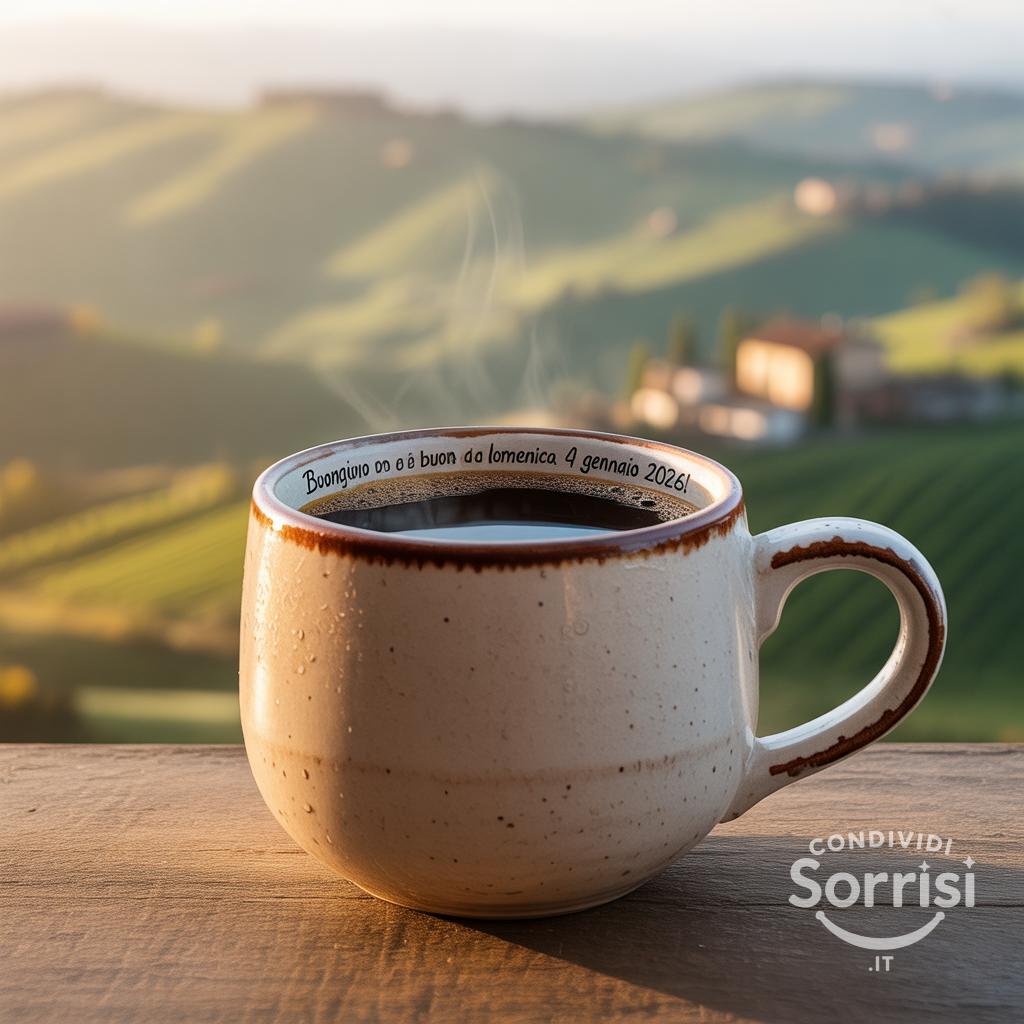 Buongiorno! ☕️☀️ Buona domenica 4 gennaio 2026! Inizia la giornata con un caffè e un panorama mozzafiato. Un giorno da vivere, assaporando ogni istante! 😊 #buongiorno #domenica #caffè #panorama #2026