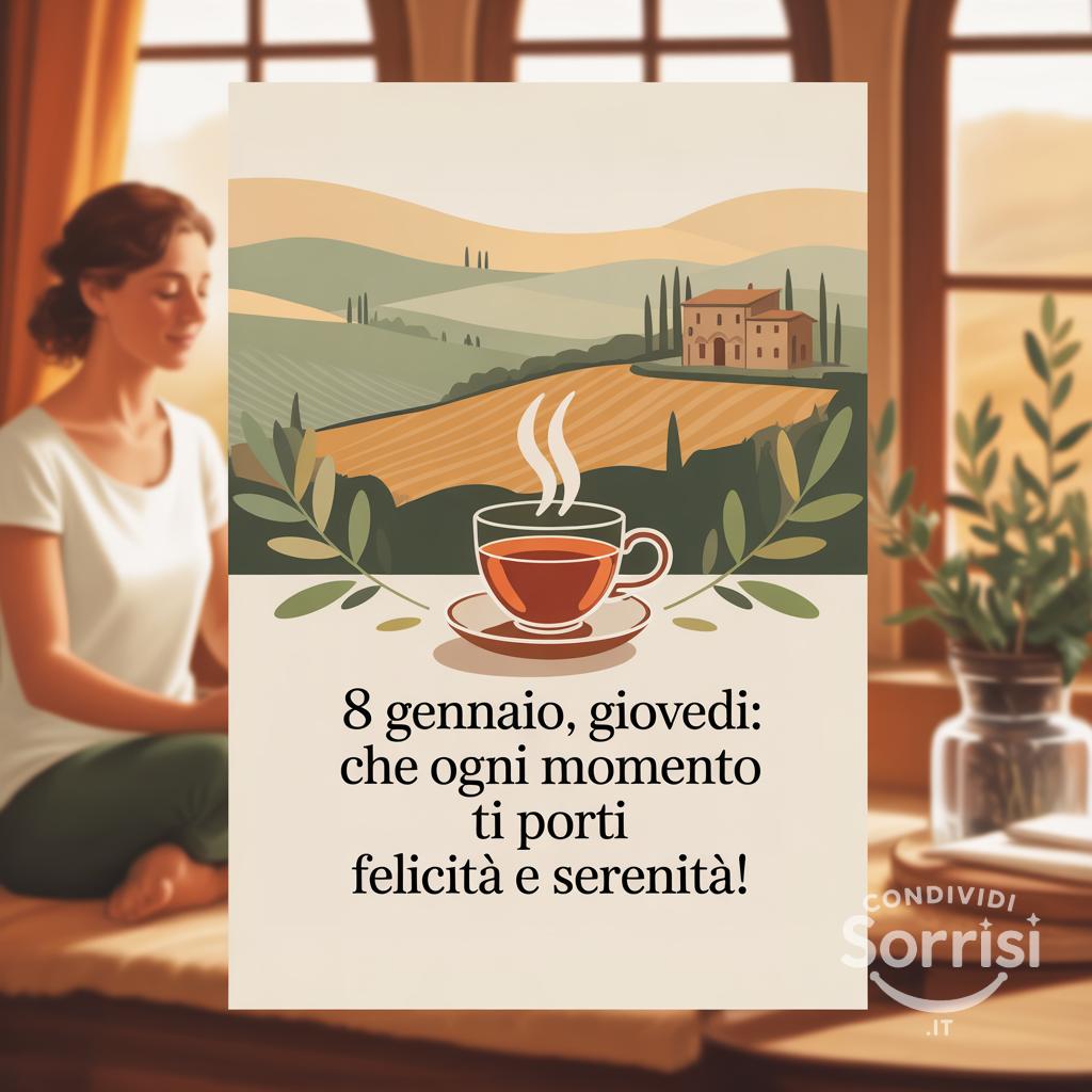 8 gennaio, giovedì: che ogni momento ti porti felicità e serenità! ☕✨ Un inizio settimana all'insegna del relax, tra paesaggi mozzafiato e piccole gioie quotidiane. Respira e goditi ogni istante!