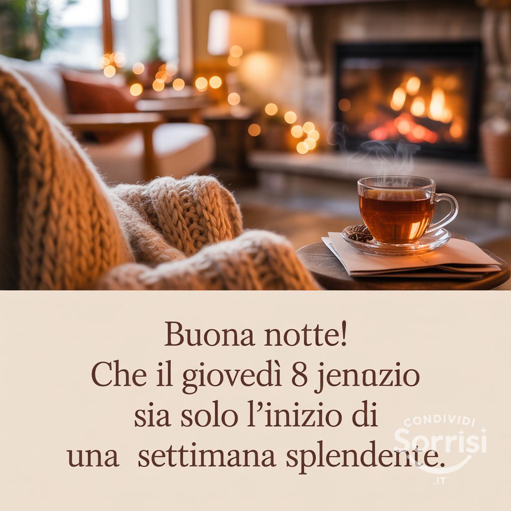 Sogni d'oro! ✨ Che il giovedì 8 gennaio sia l'inizio di una settimana splendente. ☕️🔥 Avvolgiti nel calore e lascia spazio alla serenità. Buonanotte! 😴
