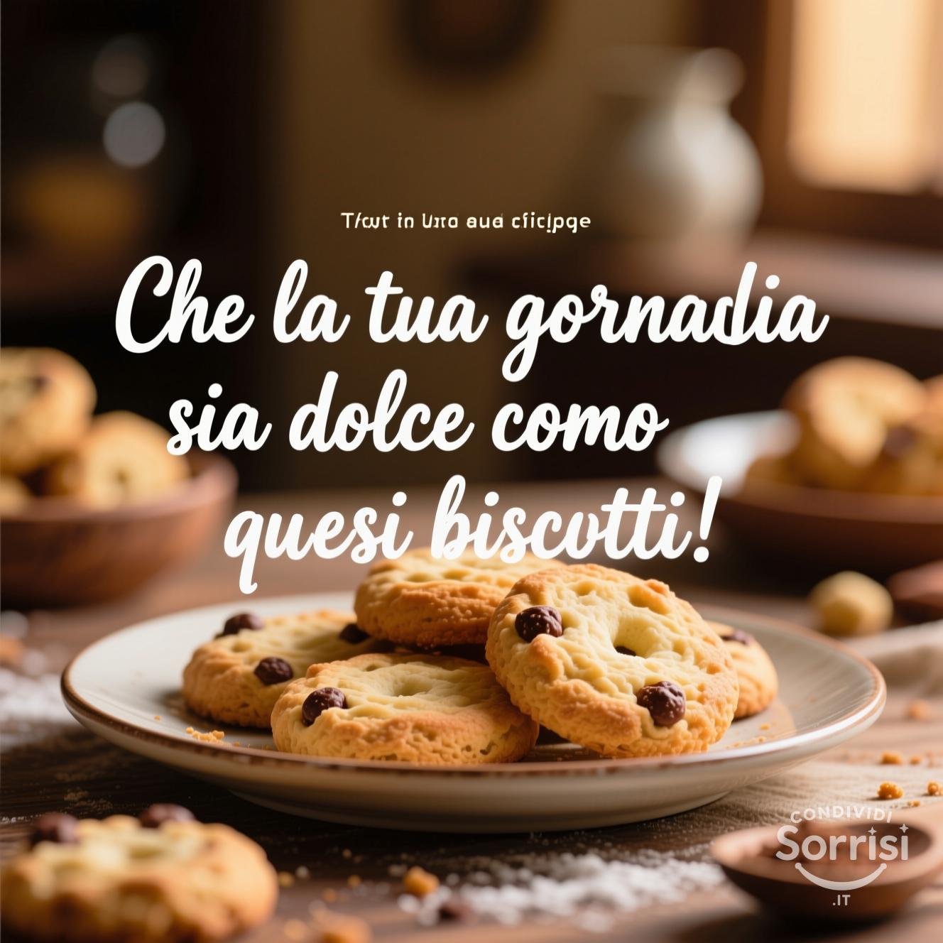 Biscotti appena sfornati e frase dolce. Foto food photography calda e invitante. "Che la tua giornata sia dolce!" Perfetta per auguri e colazioni. #biscotti #dolci #food