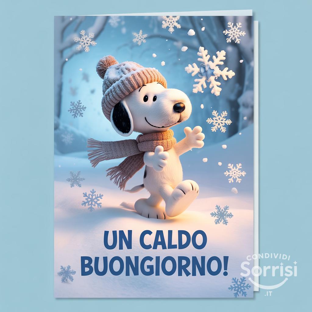 Un caldo buongiorno...con un sorriso congelato! ❄️😊 Anche il freddo più pungente non spegne l'allegria! #Snoopy #Inverno #Buongiorno #Freddo #Sorrisi
