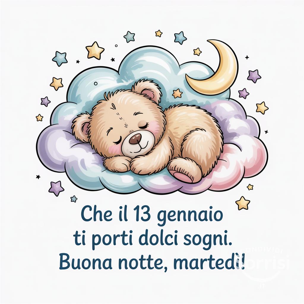 Che il 13 gennaio ti culli con dolci sogni ✨ Buonanotte, martedì! 🐻☁️ Un abbraccio tenero per una notte serena.