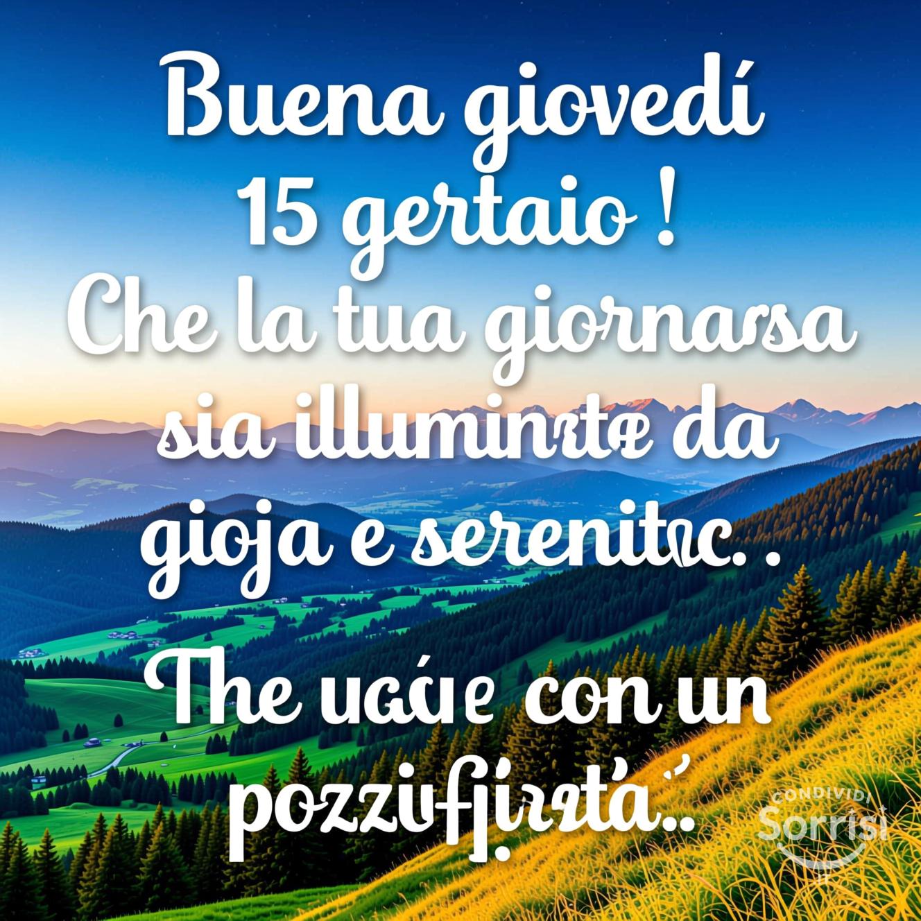 Buona giovedì 15 gennaio ! Che la tua giornata sia illuminata da gioia e serenità.