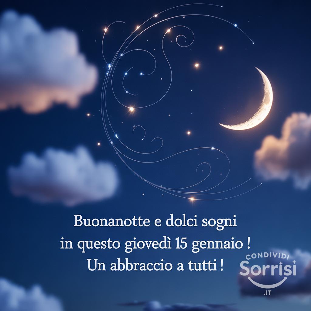 Buonanotte e dolci sogni in questo giovedì 15 gennaio ! Un abbraccio a tutti!