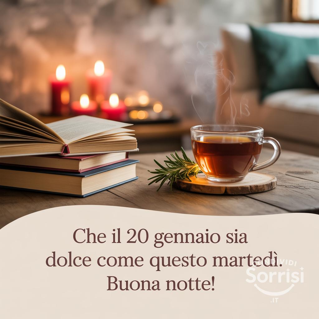 Che il 20 gennaio sia dolce come questo martedì! ☕️🕯️ Libri, candele, tè caldo… la ricetta perfetta per una buonanotte accogliente. ✨😴 #buonanotte #atmosferamorbida #relax
