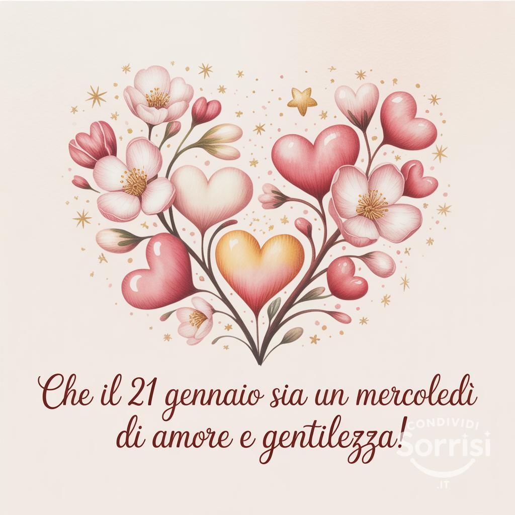 Che il 21 gennaio sia un mercoledì di amore e gentilezza! 💖 Un giorno per diffondere affetto e sorrisi, con un cuore leggero e colori delicati. ✨ #amore #gentilezza #mercoledì