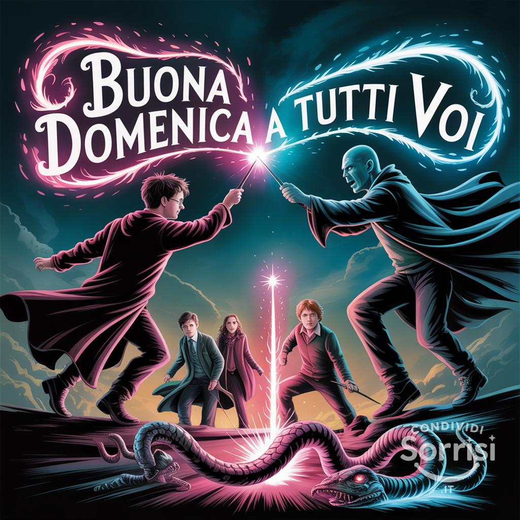 Buona domenica a tutti voi, da Hogwarts! ✨ Un incantesimo di amicizia e magia per iniziare la giornata! Ron, Hermione, Neville e l'eterno duello Potter-Voldemort! ⚡️ #HarryPotter #BuonaDomenica #Magia