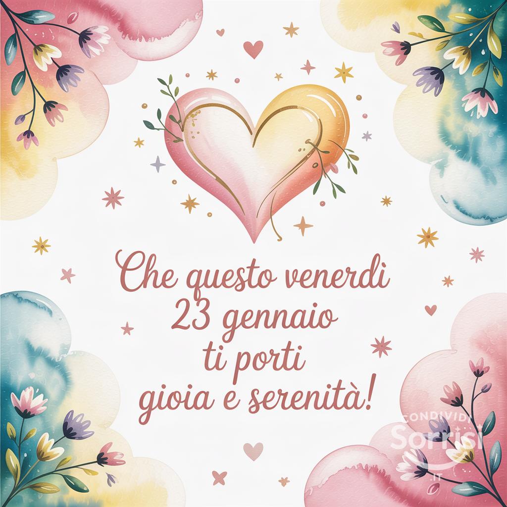 Che questo venerdì 23 gennaio ti porti gioia e serenità! 💖 Un abbraccio e un weekend pieno di colori! ✨ #venerdì #gioia #serenità #weekend