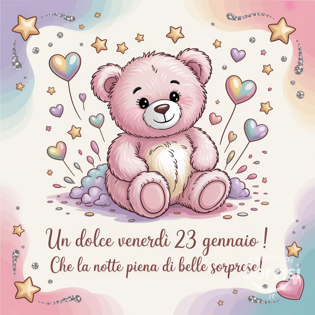 Un dolce venerdì 23 gennaio! 🐻✨ Che la notte sia piena di belle sorprese! 💖 Un abbraccio di dolcezza per un weekend stellato! #venerdì #dolcenotte #sorprese