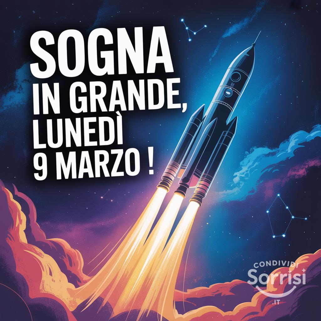 🚀 Lunedì 9 marzo: Sogna in grande! ✨ Lascia che l'ambizione ti guidi verso le stelle. Un nuovo inizio, un universo di possibilità. Che questo lunedì sia l'inizio del tuo successo! #sogni #ambizione #motivazione #nuovoinizio