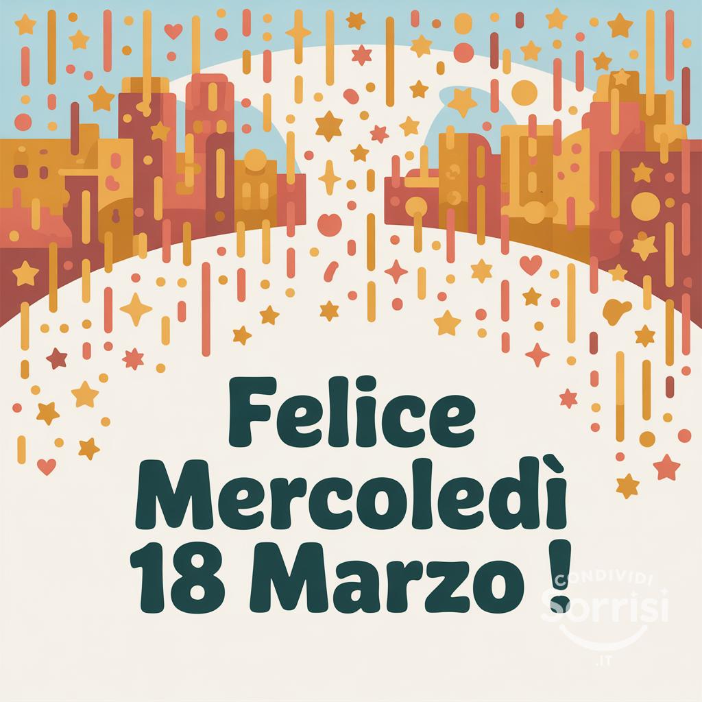 Buon Mercoledì 18 Marzo! 🎉 Che questa giornata sia piena di gioia e festosa come questa immagine! 🎊 #Mercoledì #18Marzo #Festa #Auguri