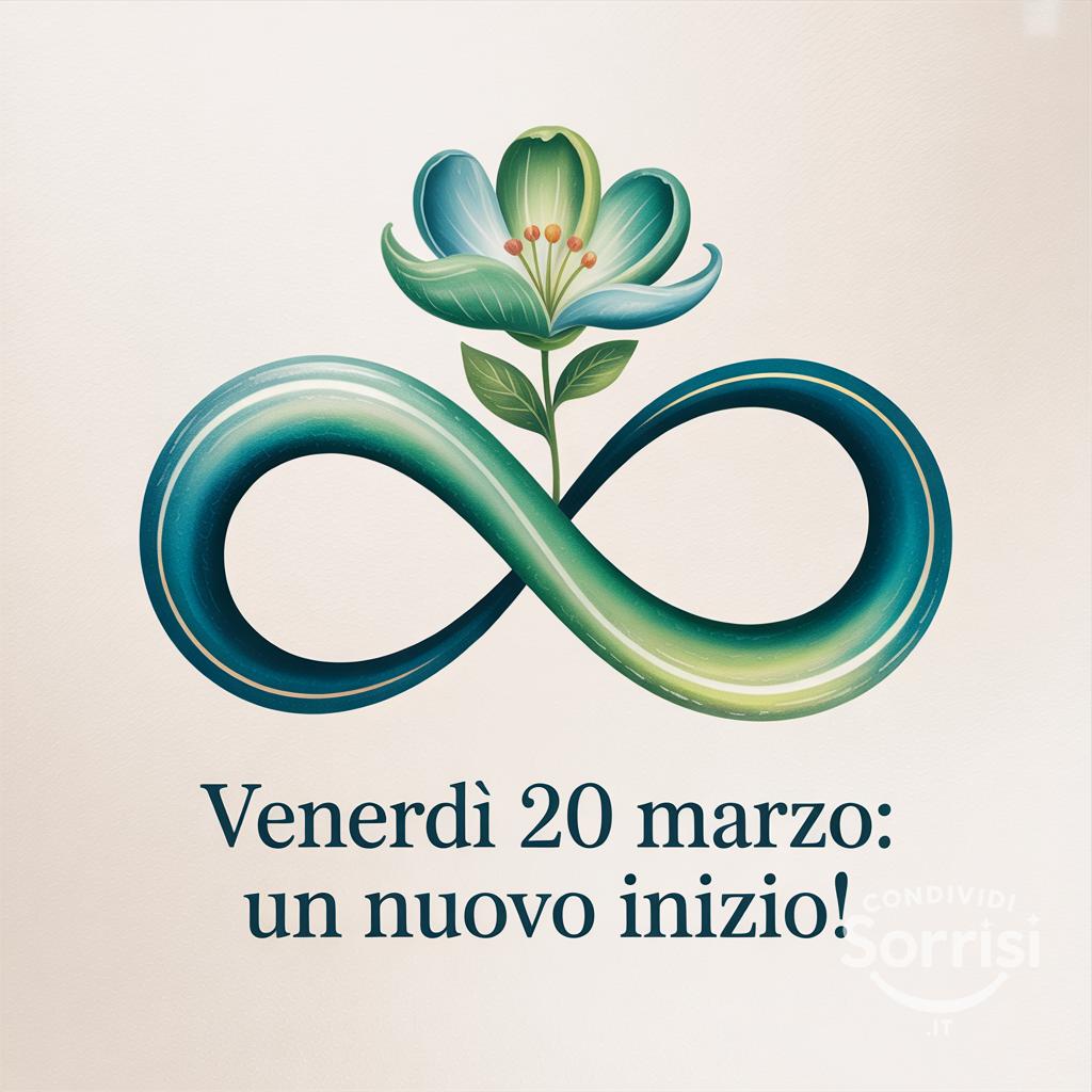 Venerdì 20 Marzo: un nuovo inizio! 🌸 Simbolo di infinito che sboccia in fiore, in un tripudio di verdi e azzurri. Freschezza e novità per te! ✨ #nuovoinizio #primavera #ispirazione #cambiamento