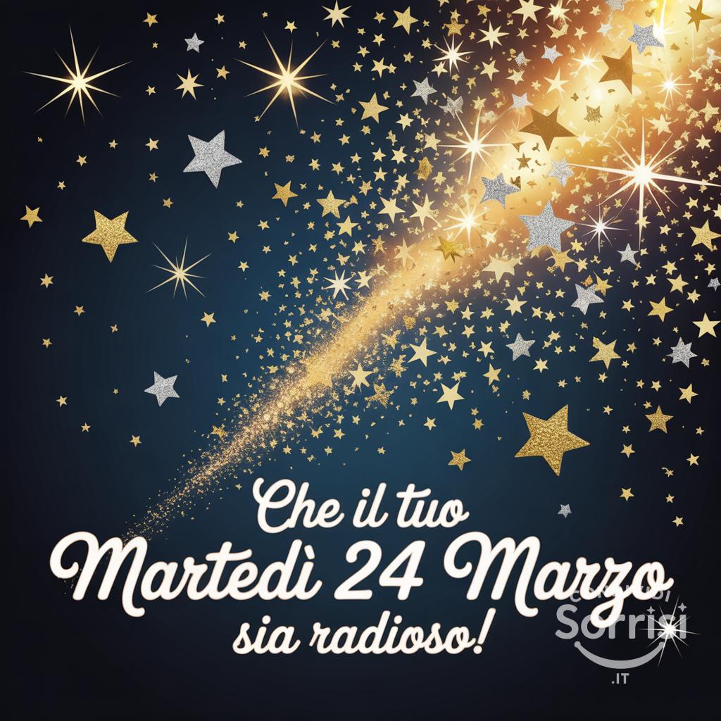Che il tuo martedì 24 marzo sia radioso! ✨ Brilla di gioia e ottimismo con un tocco d'oro e argento. Che sia un giorno scintillante! 💫 #BuonMartedì #24Marzo #Radioso