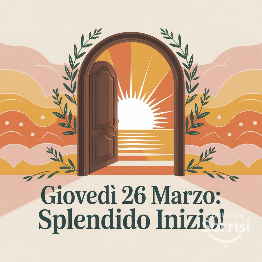 Giovedì 26 Marzo: splendido inizio! ☀️🚪 Un nuovo giorno, nuove opportunità. Lasciamoci alle spalle il passato e accogliamo il futuro con un sorriso. #nuovoinizio #motivazione #ottimismo #giovedi