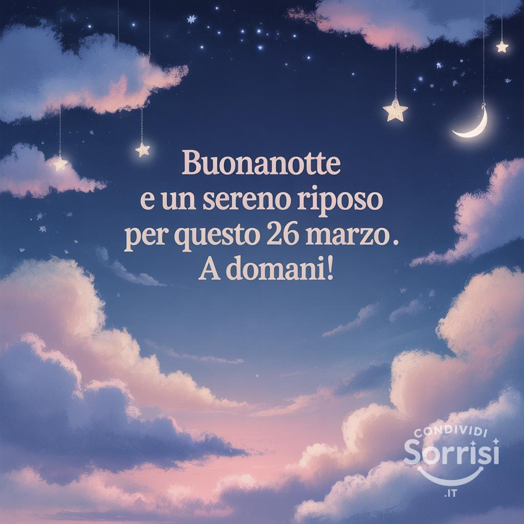 Buonanotte! ✨ Un soffice abbraccio di nuvole e stelle per un sereno riposo in questo 26 Marzo. A domani! ☁️🌟